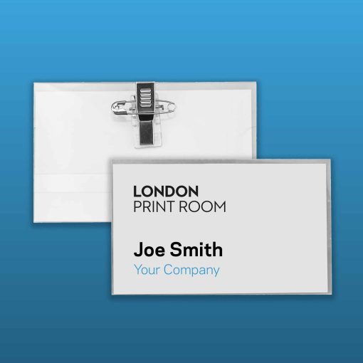 Our name badges are ideal for conferences, events, festivals and trade shows. They come with a metal clip on a back, with artwork inserted in the plastic outer casing. Name badges are a cost effective solution for identifying your team and they can be used again and again.